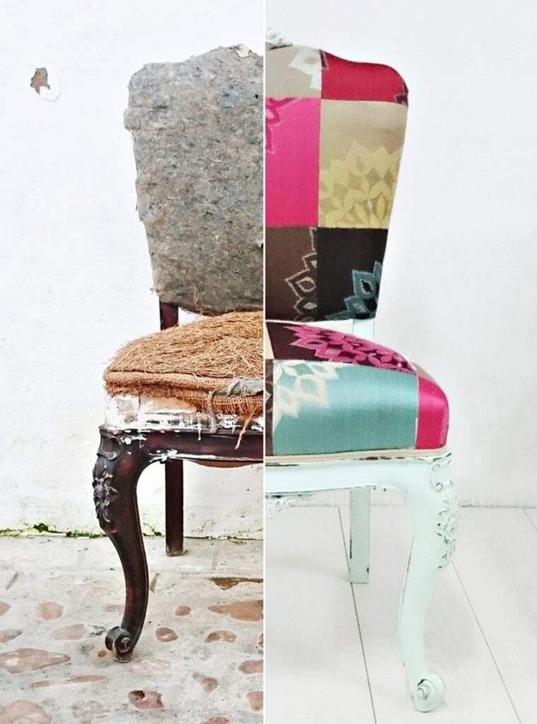 - Si tus objetos se encuentran en mal estado procura restaurarlos a su estado primigenio o dándole un punto de modernidad, mediante telas coloridas o estampados con un toque bohemio.